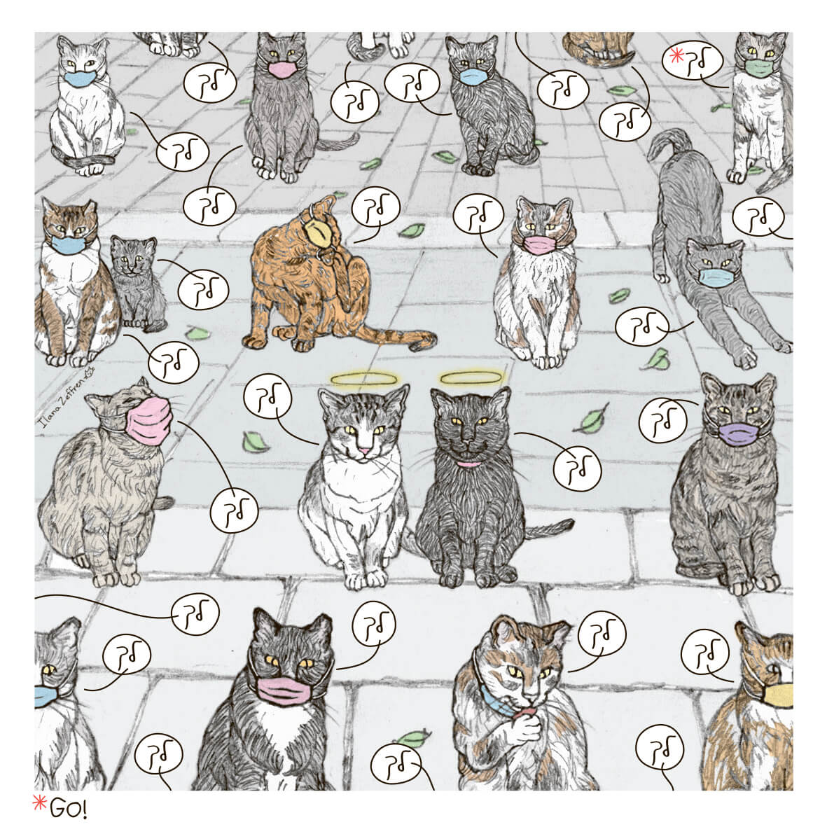 Ilana Zeffren. Go, 2020. Pencil and Photoshop.3.6 x 3.6 in. From the weekly column “Petting Corner” in Haaretz newspaper. © 2020 Ilana Zeffren. Courtesy of the artist.